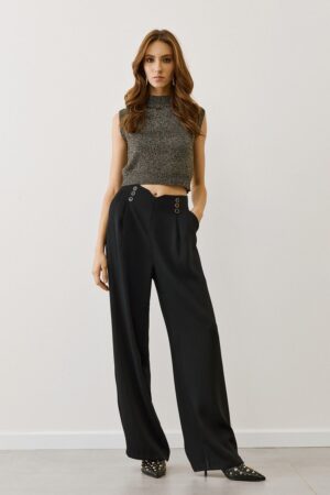 Γυναικεία Gold Button Παντελόνα-Mαύρο