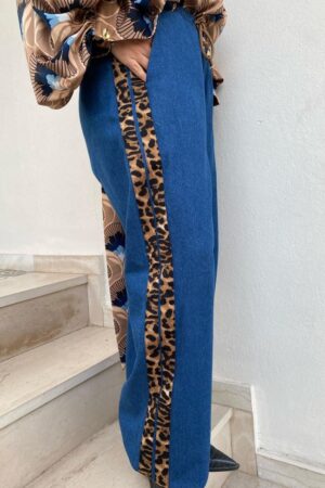 Γυναικείο Denim Παντελόνι Animal Print Detail-Μπλέ