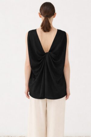 Γυναικεία Open Back Bow Μπλούζα-Μαύρο