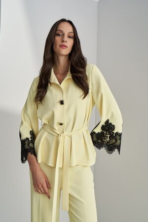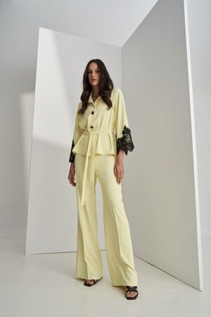 Γυναικείο Black Lace Detail Σακάκι-Παστέλ Κίτρινο