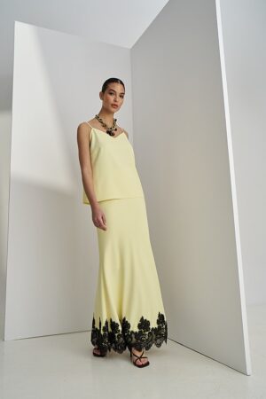 Γυναικεία Black Lace Detail Maxi Φούστα-Παστέλ Κίτρινο