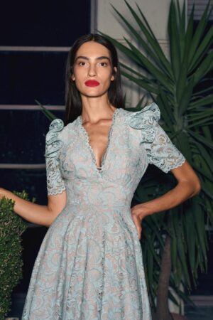 Γυναικείο Midi Lace Φόρεμα-Σιέλ