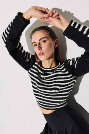 Γυναικεία Stripped Βlack/White Knit Μπλούζα-Ασπρόμαυρο