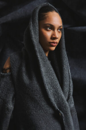 Γυναικείο Sleeveless Hoodie Long Πλεκτό Γιλέκο-Γκρί