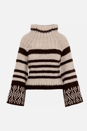 Γυναικεία Cropped stripped knit Μπλούζα-Καφέ