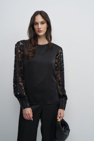 Γυναικεία Lacesleeve Μπλούζα-Μαύρο