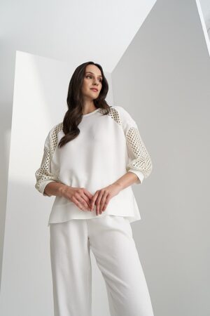 Γυναικεία Gold Mesh Sleeve Μπλούζα-Λευκό
