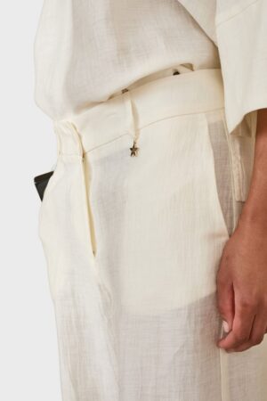 Γυναικείο Wide Leg Παντελόνι-Eκρού
