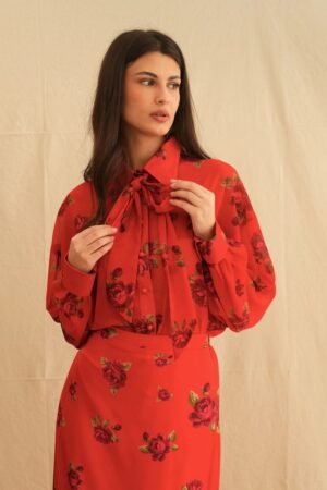 Γυναικείο Pink Rose Oversized Πουκάμισο-Floral Κόκκινο