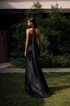 Γυναικείο Maxi Satin Mermaid Φόρεμα-Μαύρο