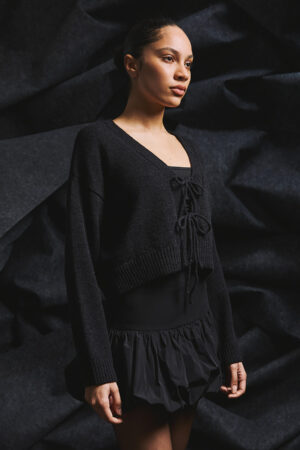 Γυναικεία String Knit Ζακέτα-Μαύρο