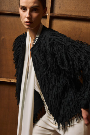 Γυναικεία Short fringed knit Ζακέτα-Μαύρο