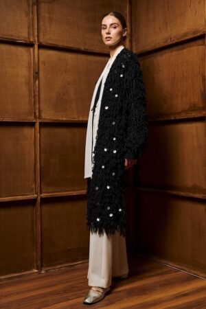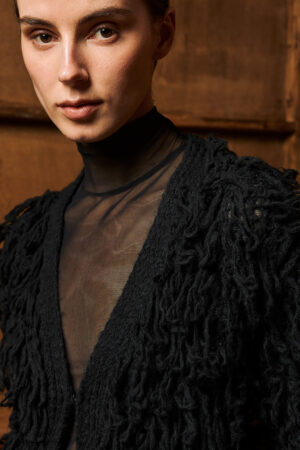 Γυναικεία Long Fringed Knit With Tinsel Ζακέτα-Μαύρο