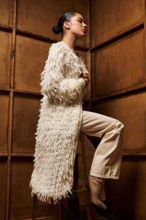 Γυναικεία Long Fringed Knit Ζακέτα-Εκρού