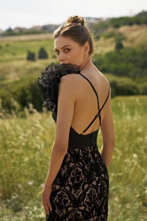 Γυναικείο Maxi Bloom Mermaid Φόρεμα-Μαύρο