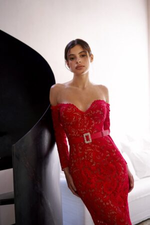 Γυναικείο Maxi Φόρεμα Lace-Κόκκινο
