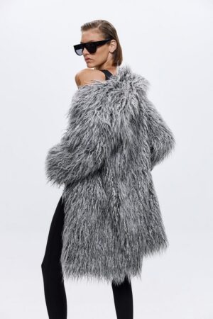 Γυναικείο Joy Faux Fur Πανωφόρι-Γκρί