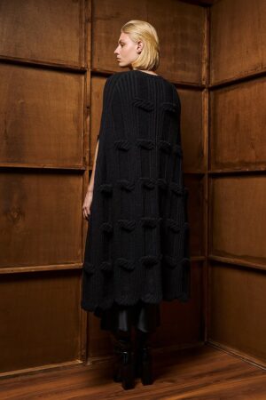 Γυναικεία Long Knit Cape Ζακέτα-Mαύρο