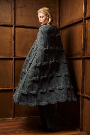 Γυναικεία Long Knit Cape Ζακέτα-Γκρί