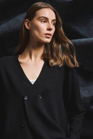 Γυναικεία Across Buttons Oversized Ζακέτα-Μαύρο