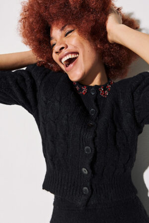 Γυναικεία Cropped Knit With Stones Sewn Handmade Ζακέτα-Μαύρο