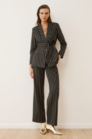 Γυναικείο Sequin Pinstripe Παντελόνι-Μπλέ
