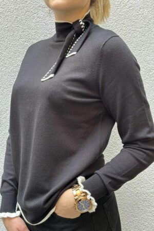 Γυναικεία Πλεκτή Μπλούζα BowTurtleneck-Μαύρο