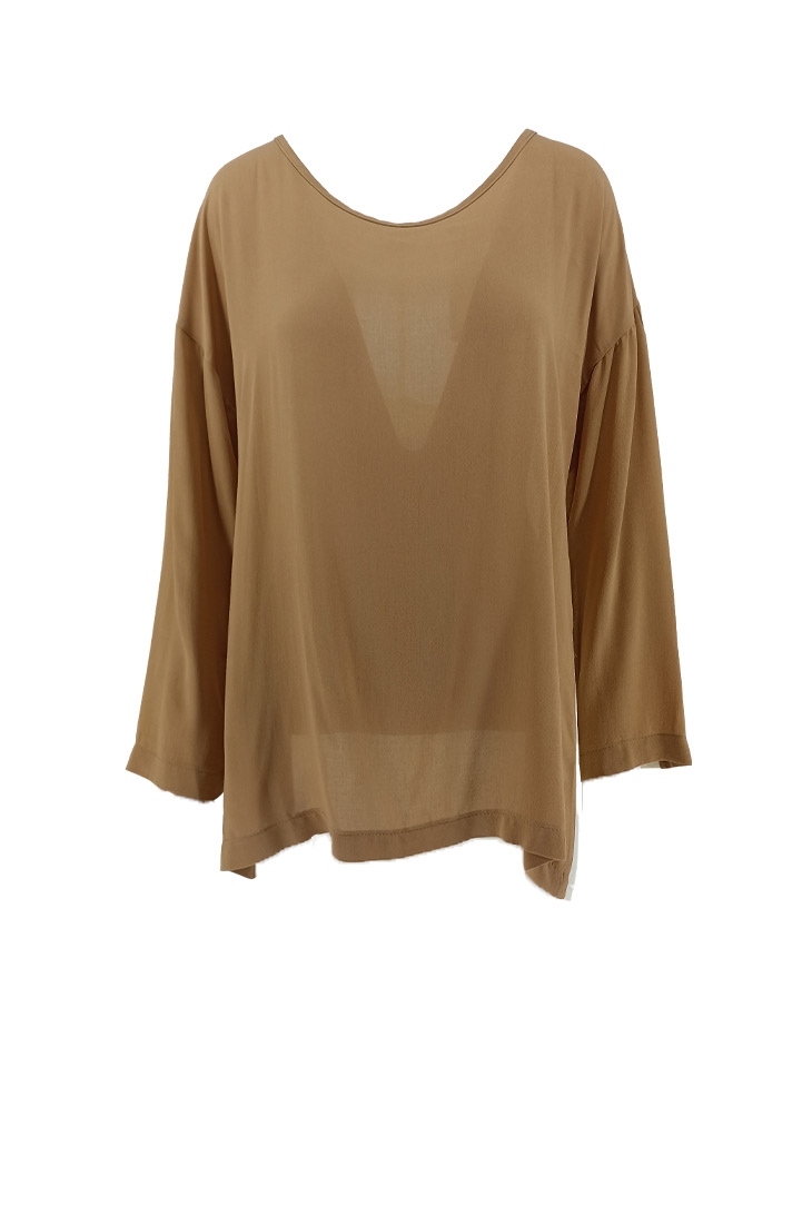-Γυναικεία μπλούζα από φίνο ύφασμα σε καφέ απόχρωση.