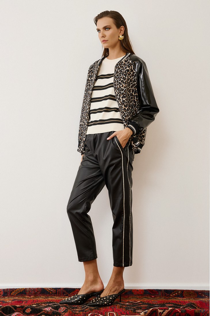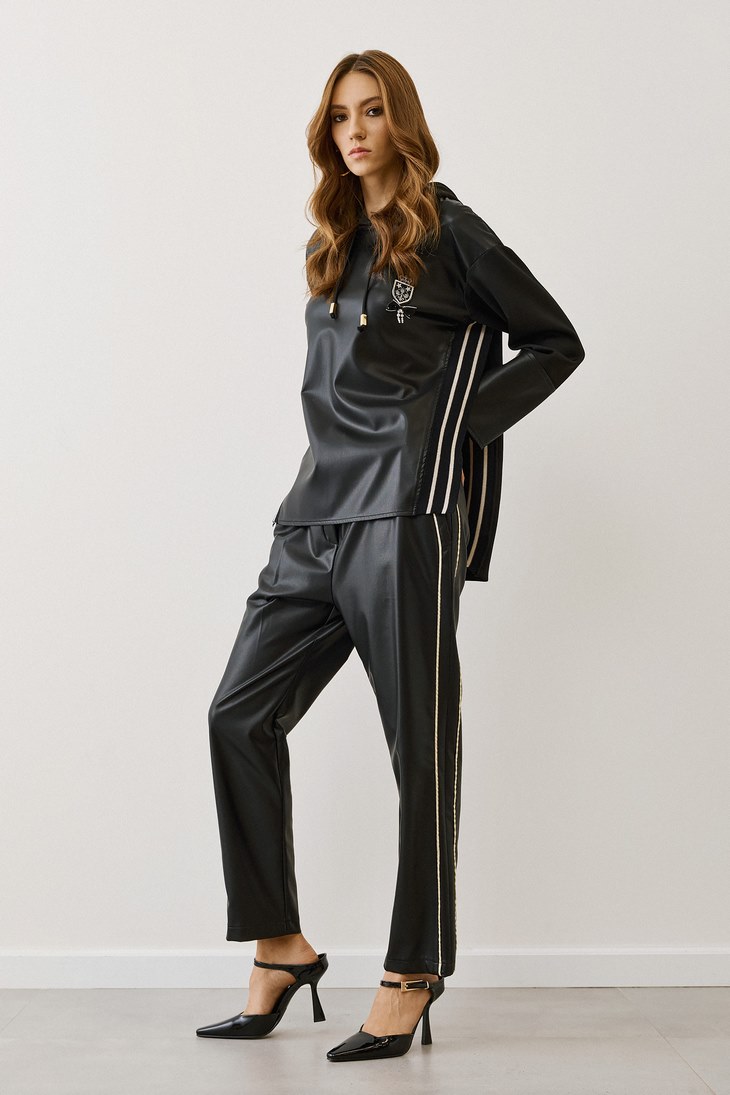 Γυναικείο Εco Leather Strip Παντελόνι-Μαύρο