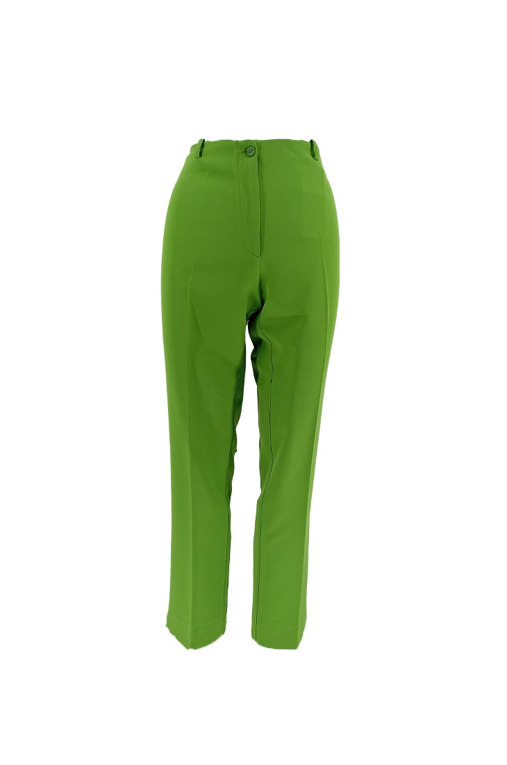 -Γυναικείο κρέπ παντελόνι σε πράσινη απόχρωση.