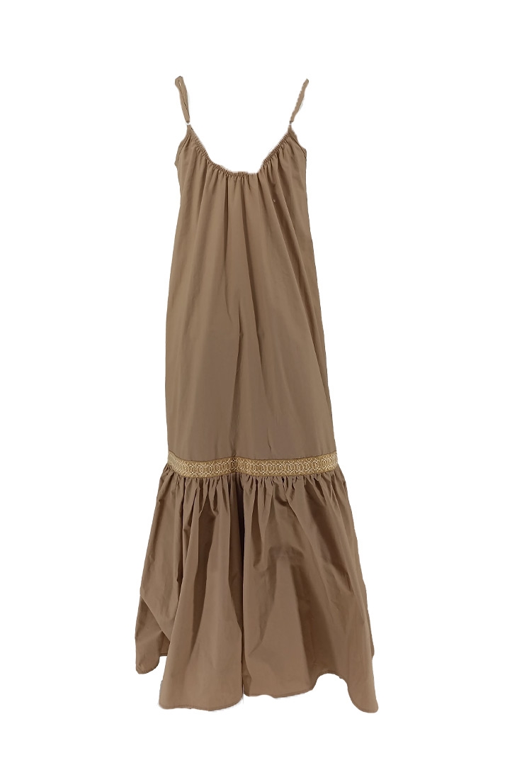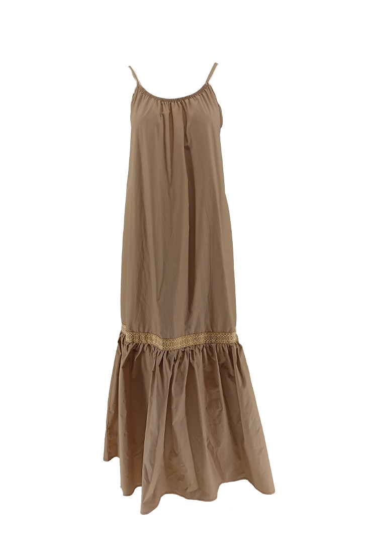 -Γυναικείο maxi φόρεμα σε μπεζ απόχρωση.