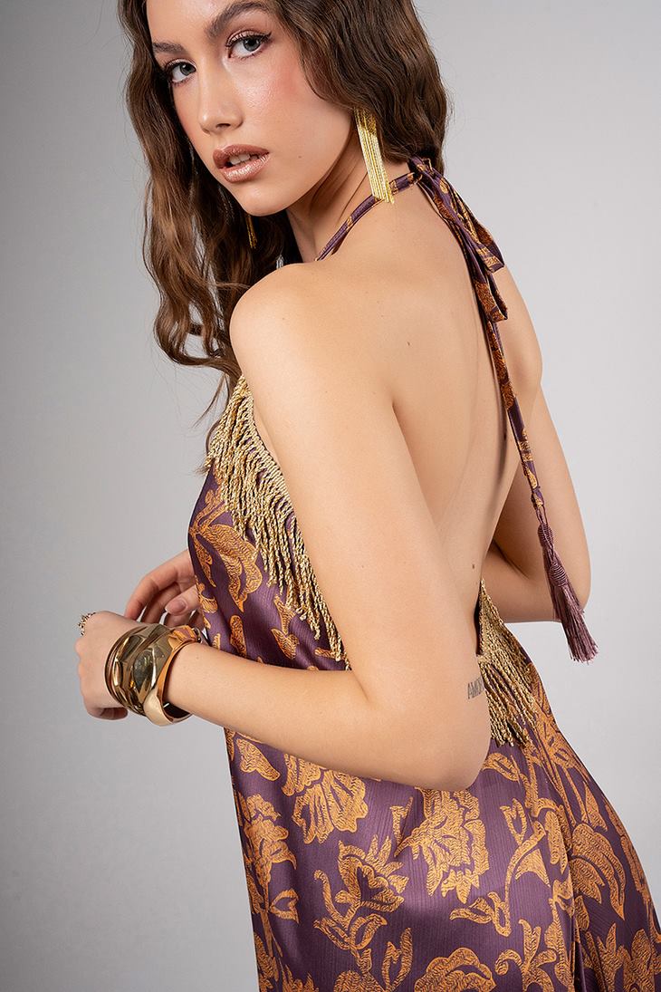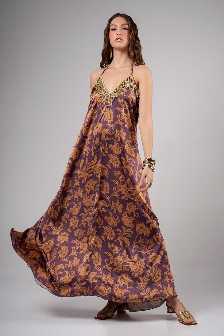 -Γυναικείο maxi φόρεμα σατέν σε εμπριμέ απόχρωση.