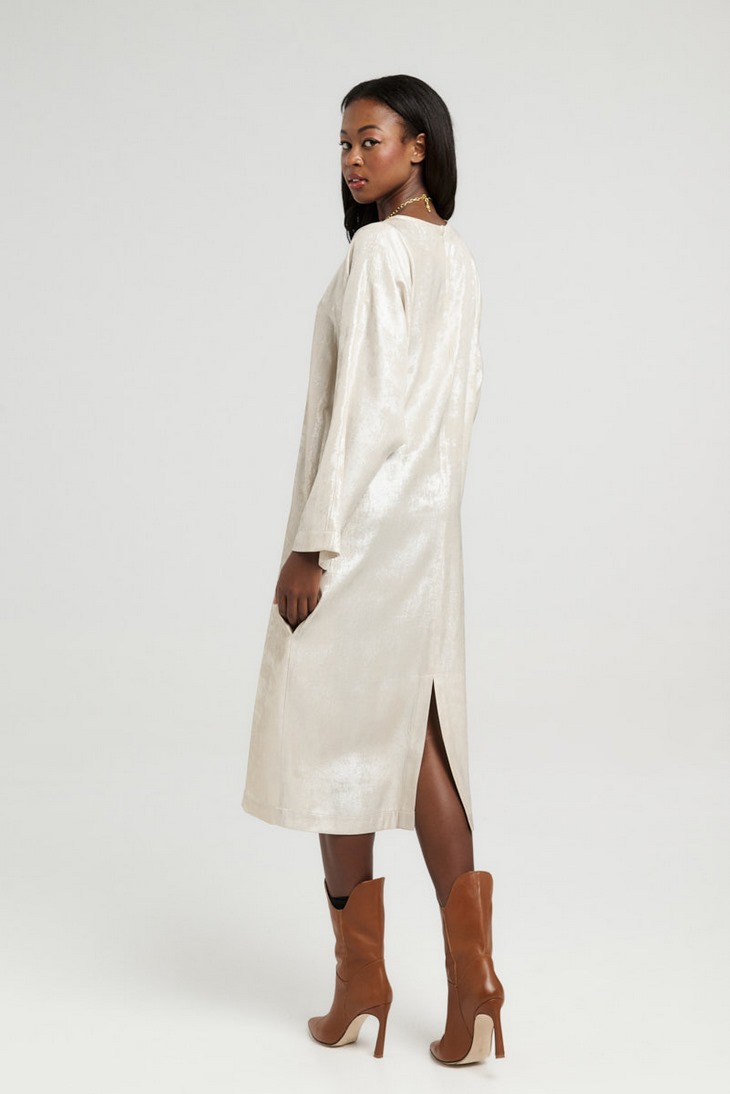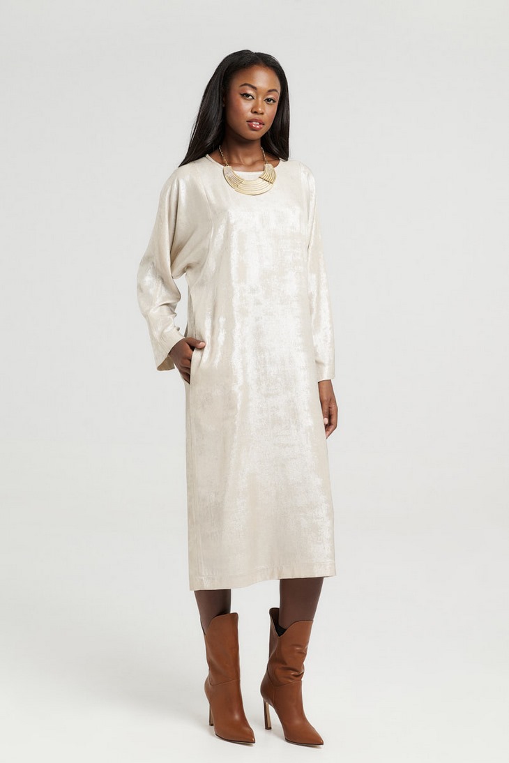 -Γυναικείο midi φόρεμα σε χρυσή απόχρωση.