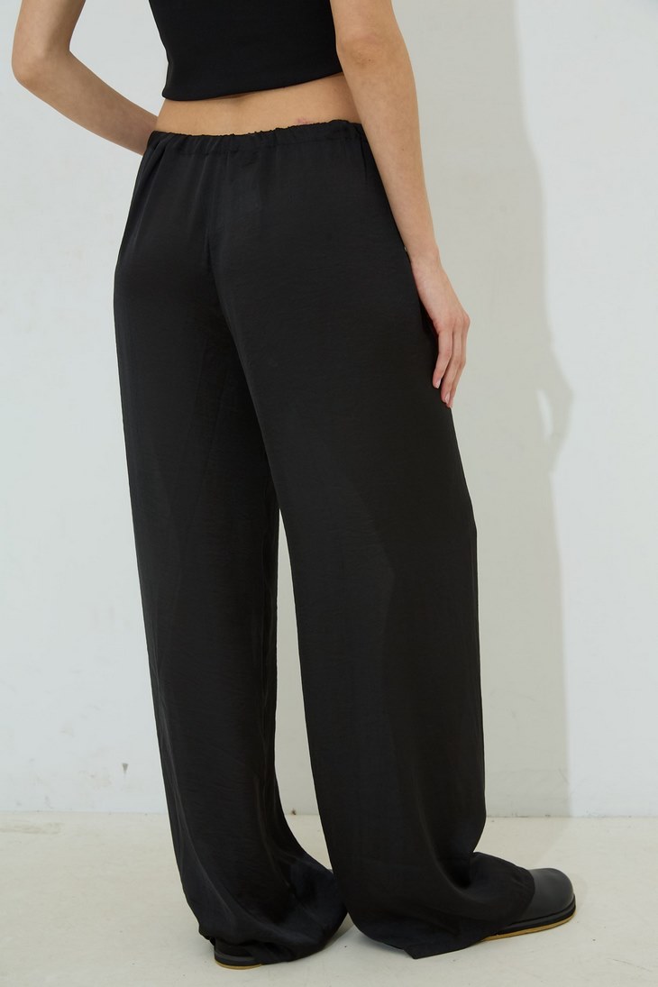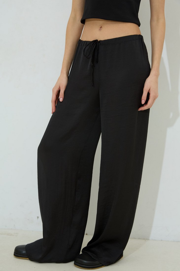 Γυναικείο Satin Loose Παντελόνι-Μαύρο