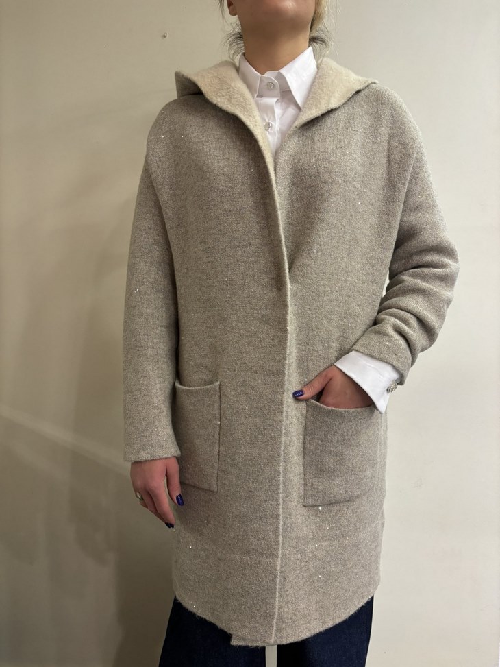 Γυναικεία Πλεκτή Ζακέτα Hoodknit-Eκρού