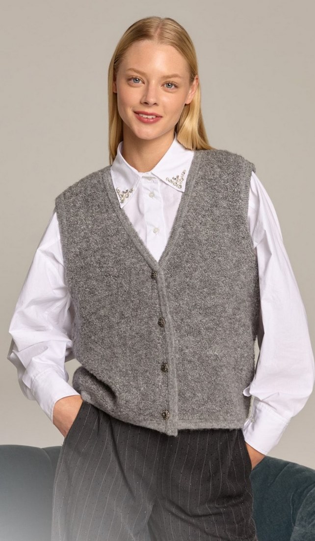 Γυναικεία Πλεκτή Καζάκα Knitvest-Γκρί