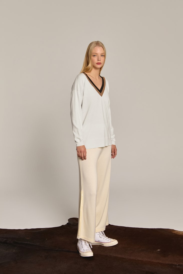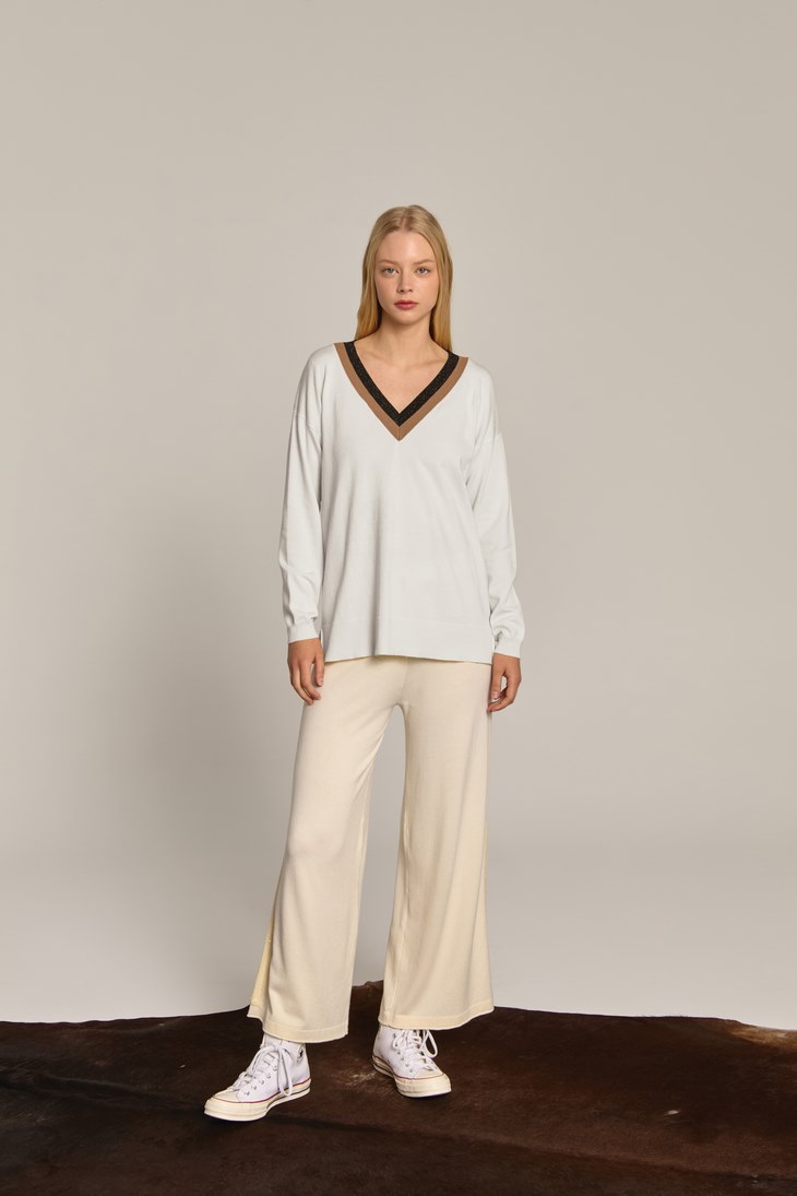 Γυναικεία Πλεκτή Μπλούζα Shimmer V-Λευκή