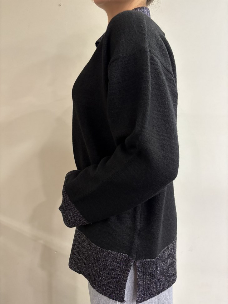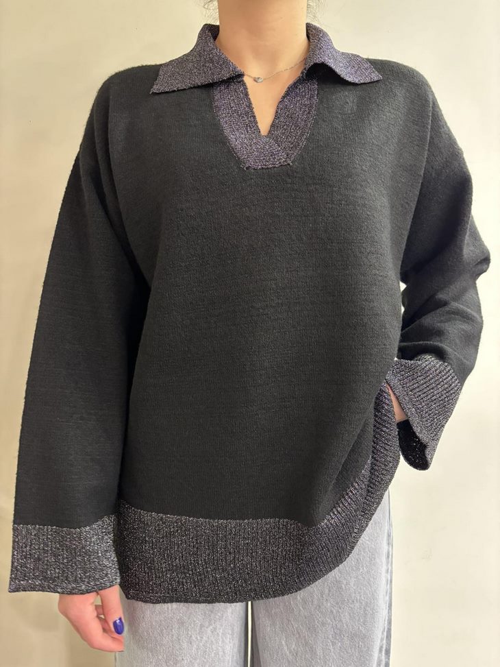 Γυναικεία Πλεκτή Μπλούζα V Glamtrim-Μαύρο