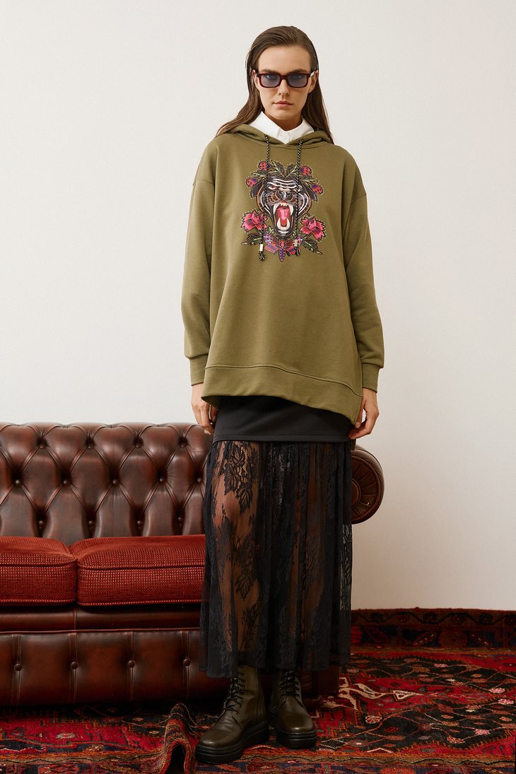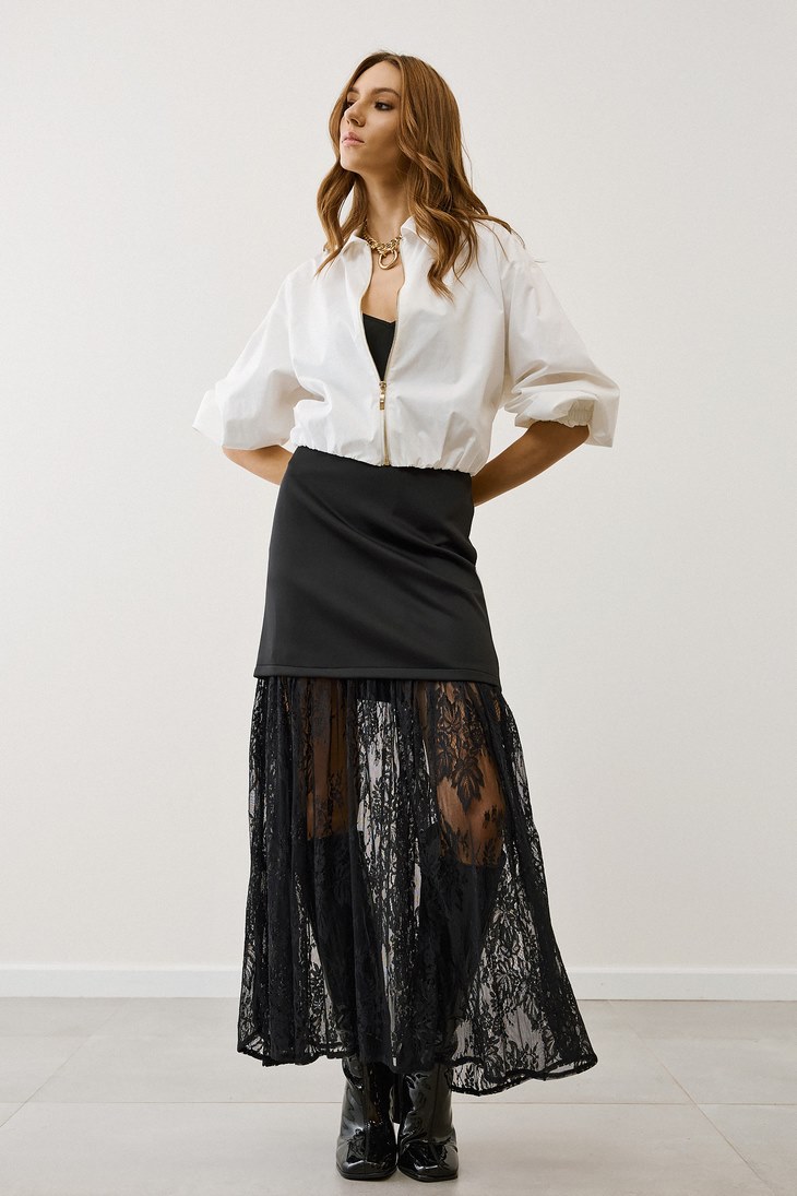 Γυναικεία Φούστα Sweat & Lace-Μαύρο