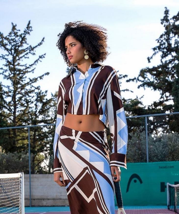 Γυναικεία Cropped Top Geometric Μπλούζα-Εμπριμέ