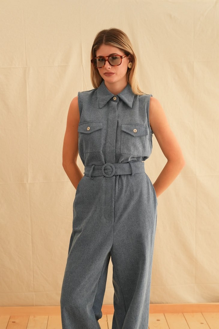 Γυναικεία Denim Safari Ολόσωμη Φόρμα-Μπλε
