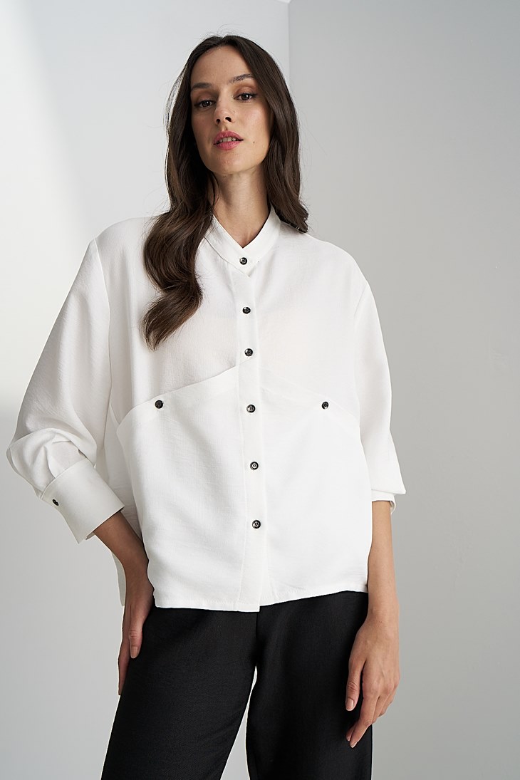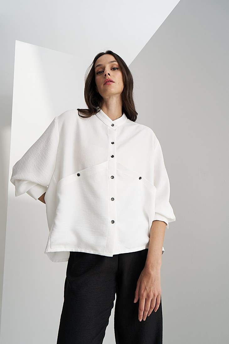 Γυναικεία Design Pocket Collar Πουκάμισο-Λευκό