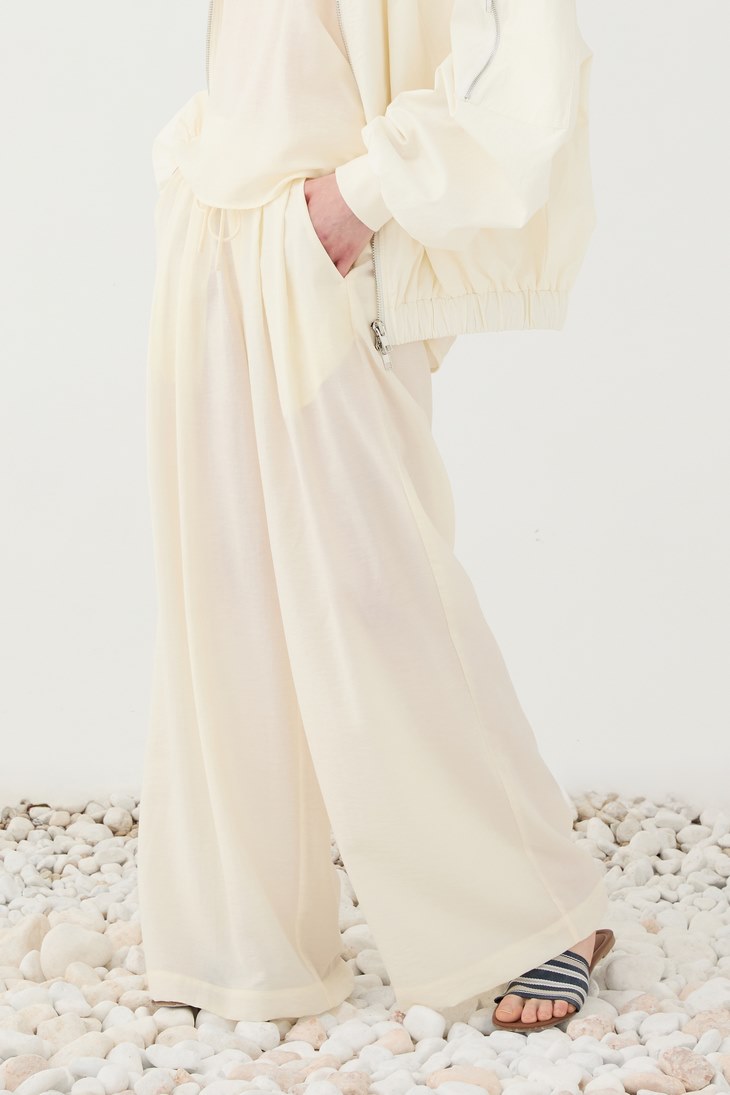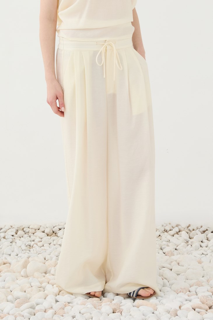 Γυναικεία Flowy Tie Παντελόνα-Εκρού
