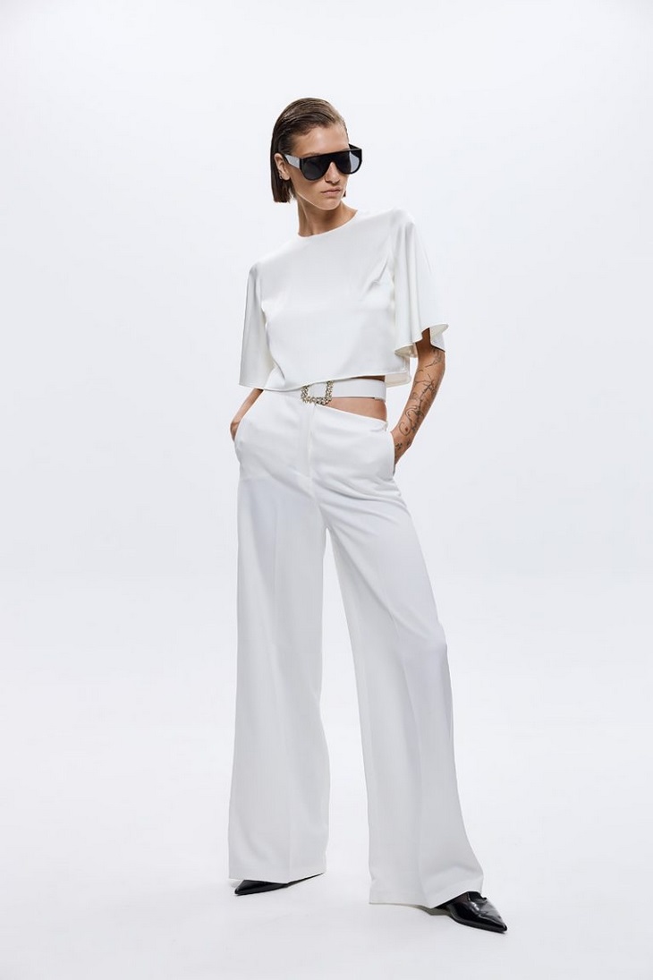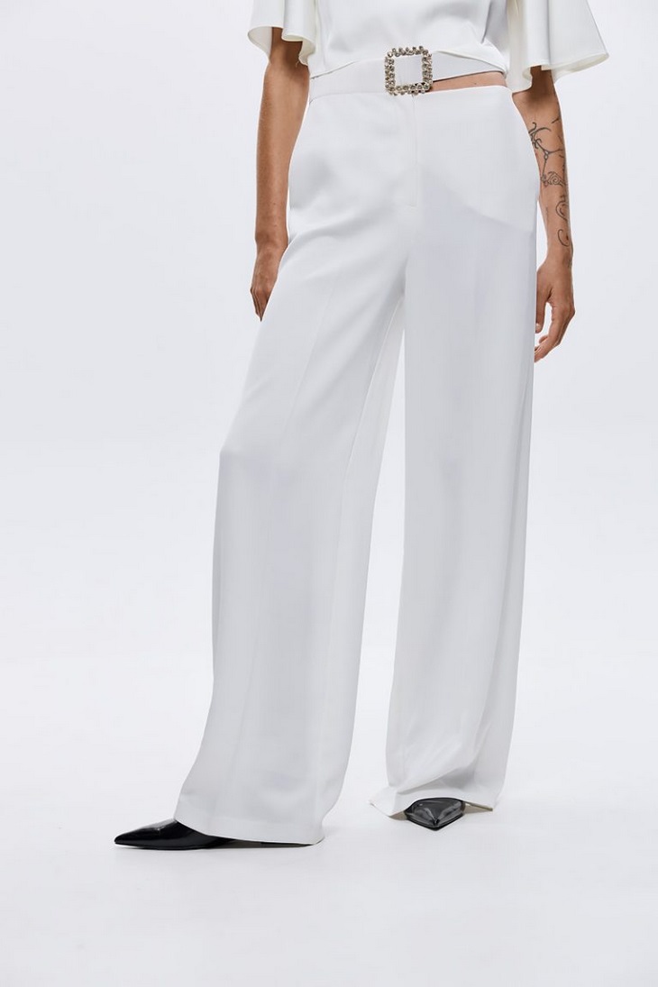 Γυναικεία Kendy Satin Crepe Παντελόνα-Λευκό