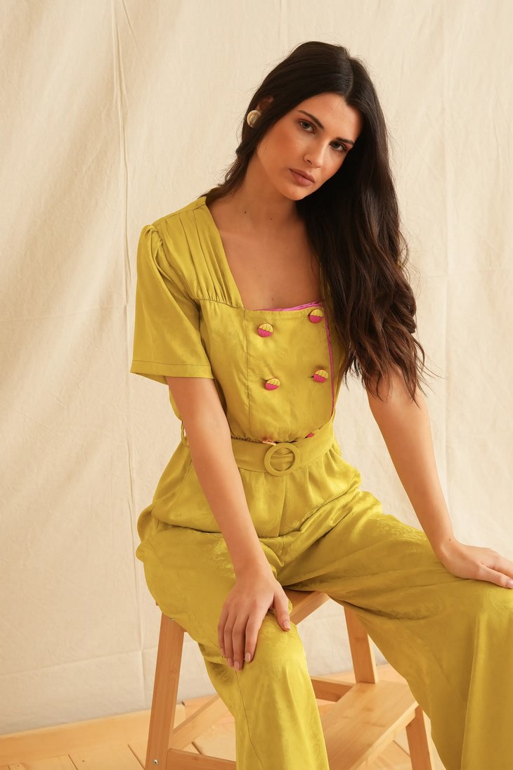 Γυναικεία Lime Jacquard Ολόσωμη Φόρμα-Lime