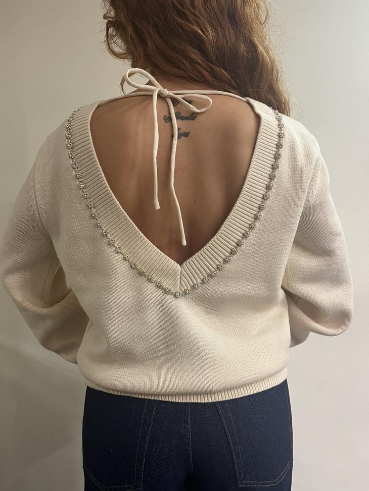 Γυναικεία Open Back Glam Πλεκτή Μπλούζα-Εκρού