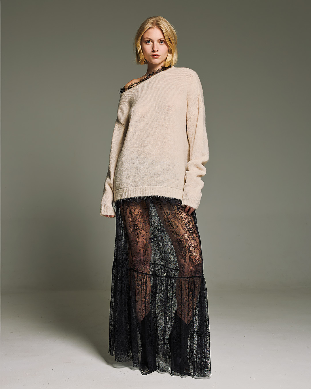 Γυναικεία Open Neck Lace Knit Μπλούζα-Μπεζ