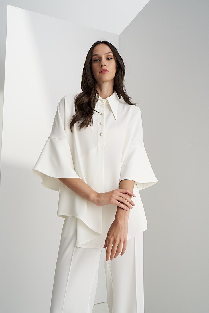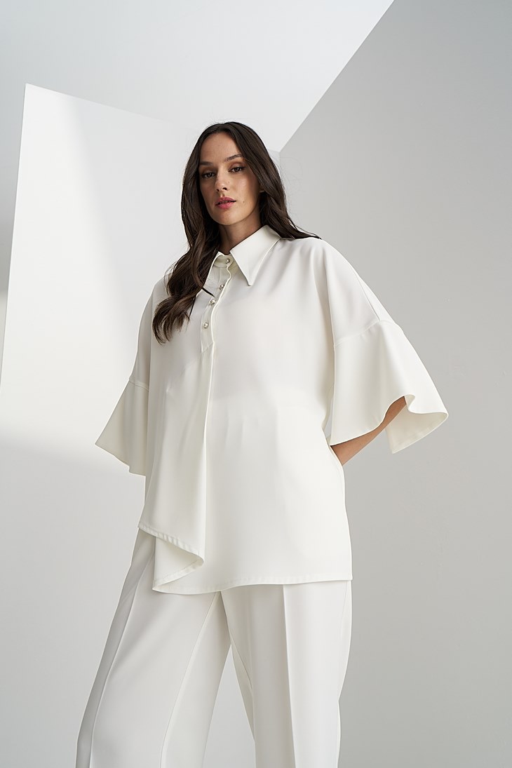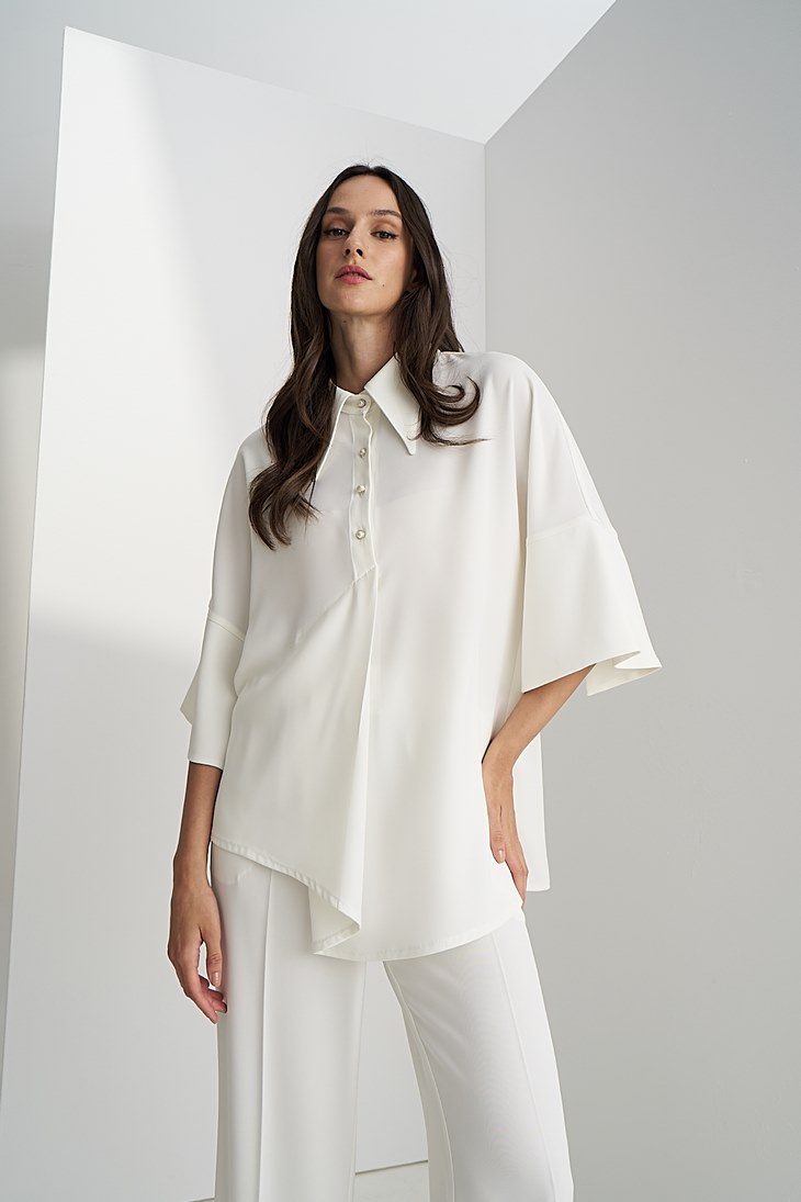 Γυναικεία Perla Button Μπλούζα-Λευκό