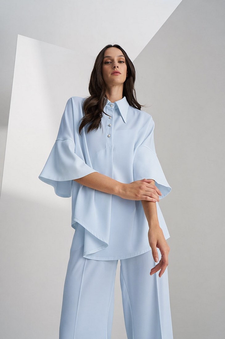 Γυναικεία Perla Button Μπλούζα-Σιέλ