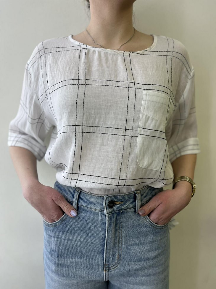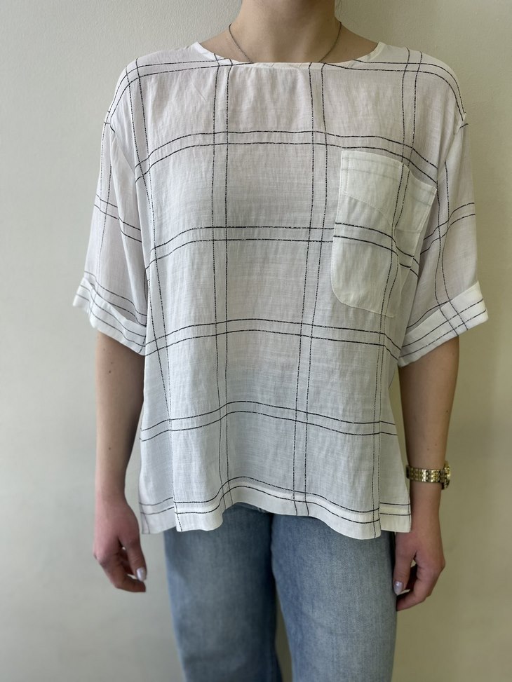 Γυναικεία Plaid Black and Silver Μπλούζα-Λευκό